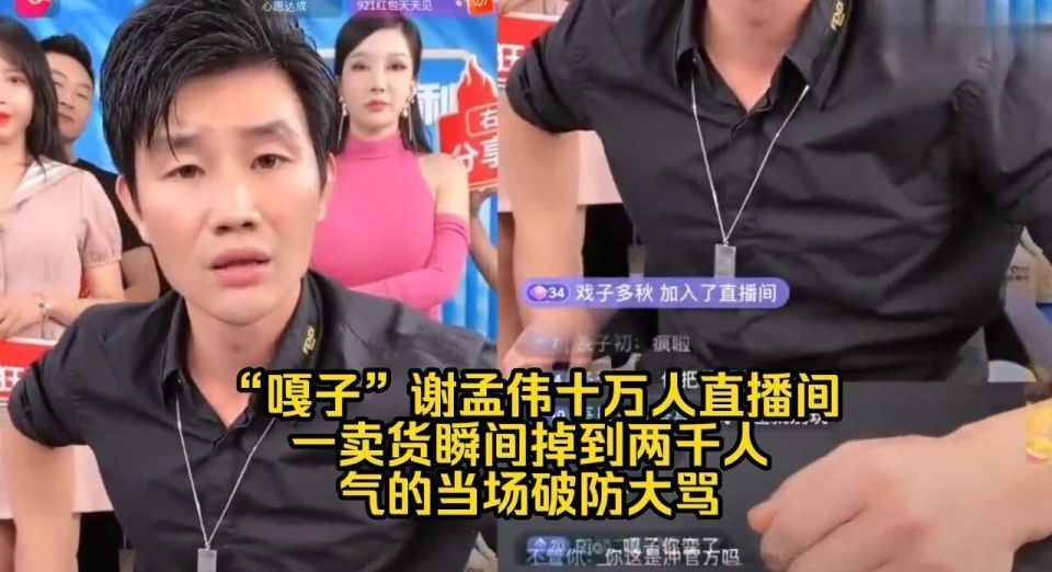而在网友录制的谢孟伟直播带货视频中,大家纷纷吐槽他在直播间脏话连篇,辱骂员工,推销劣质产品。有人在直播间里调侃“你卖的吃的有解药吗?”然后被踢出直播间。